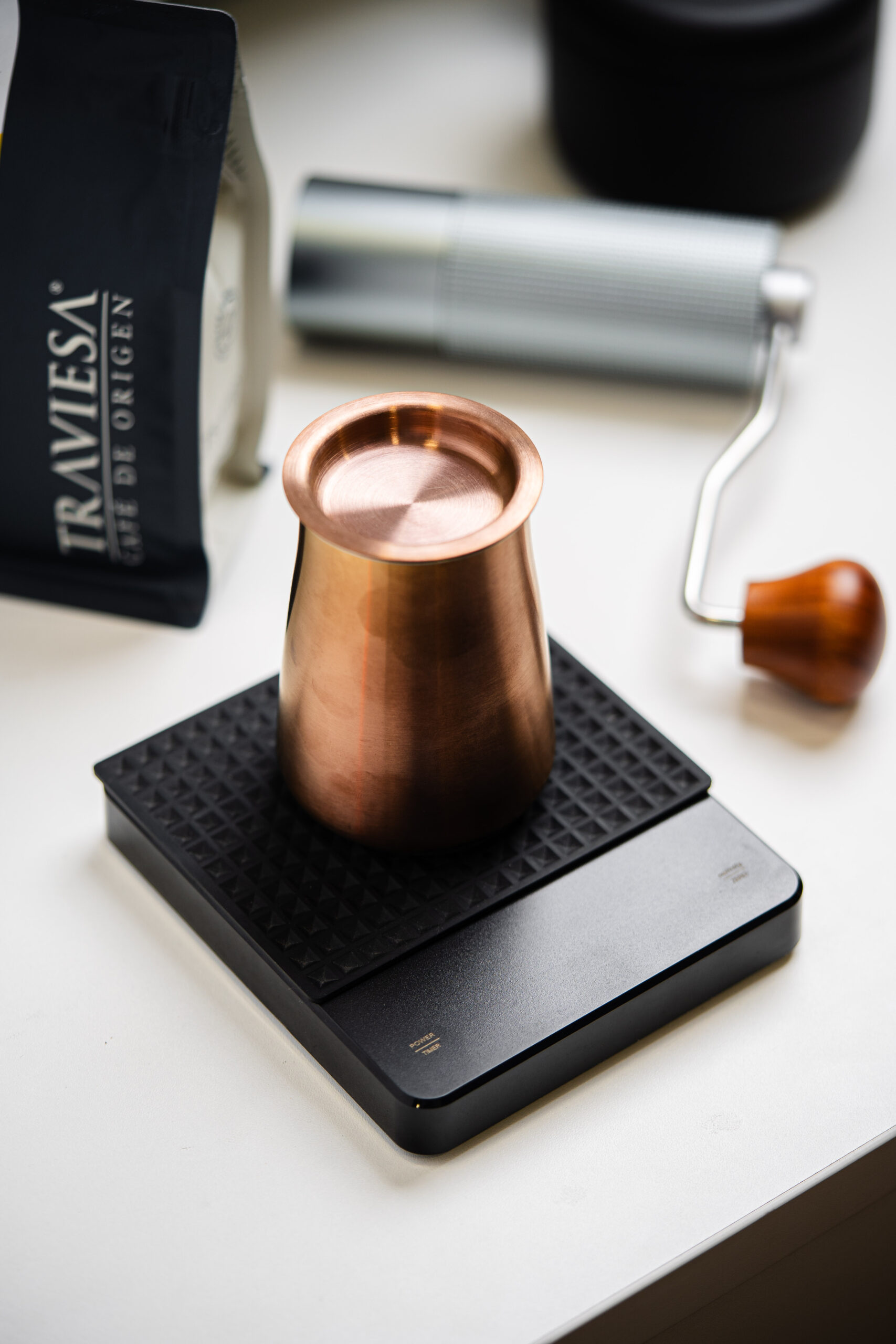 Esta balanza de precisión incorpora peso en décimas (gramos, onzas o mililitros) y cronómetro. Adicional tiene un panel de luz led que aporta elegancia en cualquier barra. Viene con una caucho antideslizante resistente al agua, cable USB para conectar su batería de lítio y un manual de instrucciones donde se instruye las distintas programaciones que trae este dispositivo; entre ellas, su auto cero y auto apagado para optimizar el tiempo en barra o en casa. Este accesorio lo recomendamos para baristas principiantes que quieran trabajar con un equipo durable y confiable.